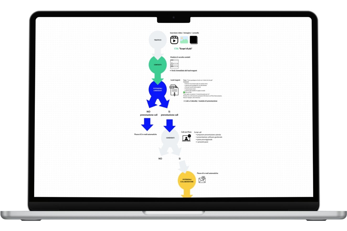 Per rispondere a questa complessità è stato progettato un funnel di recruiting multi-step, pensato per educare, qualificare e selezionare i candidati in modo progressivo.