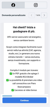 Inserzioni rivolte ai contatti più caldi, orientate alla richiesta di contatto e alla prenotazione della call.